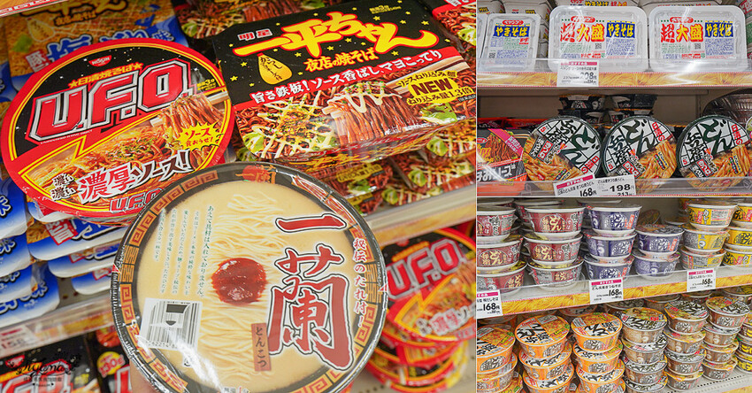 餅乾、洋芋片、巧克力、糖果、果凍、泡麵,逛過這麼多間超市,第一次看到一蘭拉麵的泡麵,福岡是一蘭拉麵的發源地,雖然台灣一蘭拉麵分店也有賣這款泡麵,但是價格足足是這裡的1.6倍左右,忍不住多帶幾碗回來。