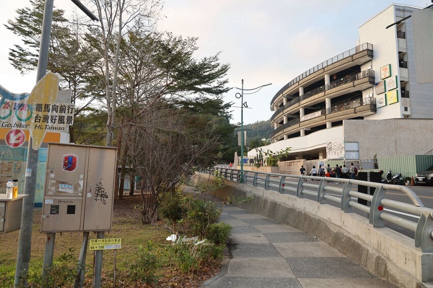 騎乘一會兒,穿越停車場後,就可以見到環潭自行車道的標示。