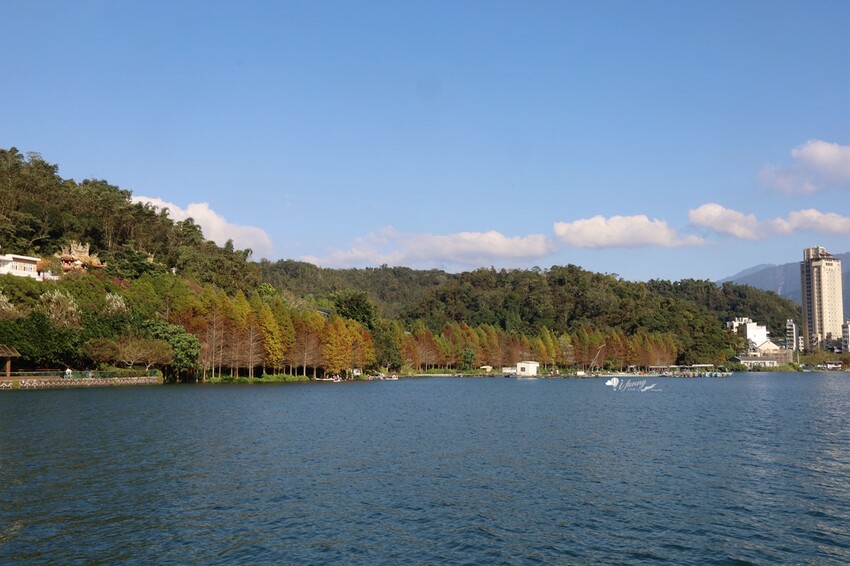 紅綠相間的落羽松,將日月潭的美景妝點地更加出色。