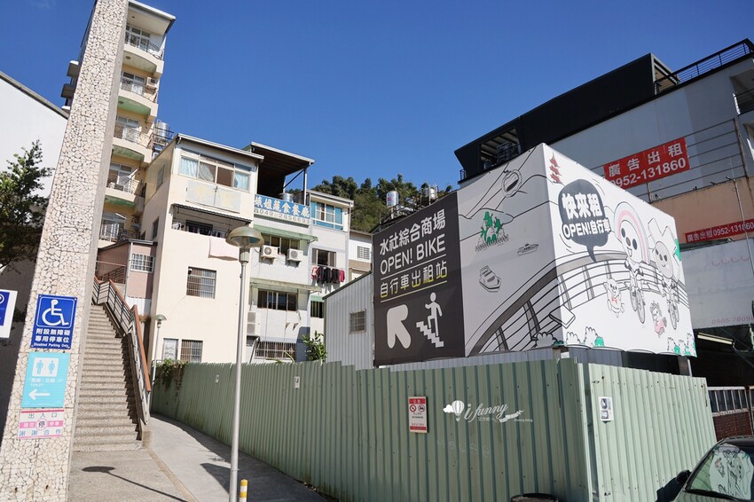 這次我們選擇的OPENBIKE自行車出租站,位在水社綜合商場的三樓,從停車場出來穿越馬路後,就可以見到日月潭OPENBIKE自行車出租站的指引標示,只要上樓就可以抵達。