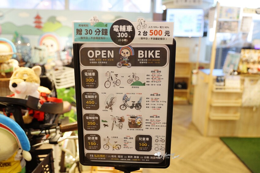 OPENBIKE自行車出租站主要提供的就是電輔車,有寵物電輔車、親子電輔車,另外也有變速車與兒童車的選項可以選擇。