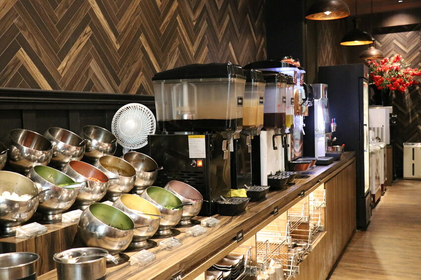 自助吧台的部分會包含飲品.冰淇淋.醬料.白飯.啤酒等