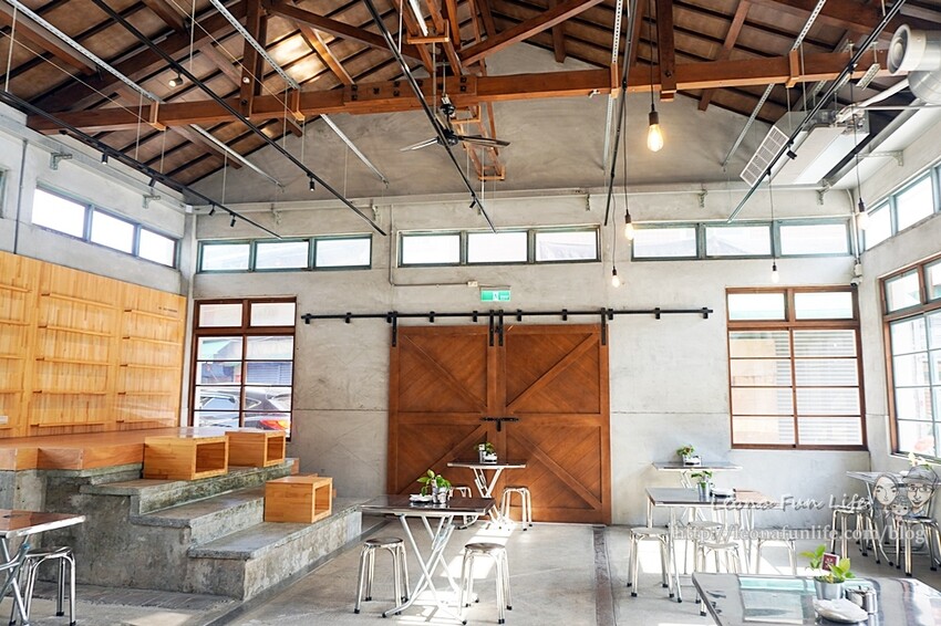 以白鐵架、木質裝潢搭配,