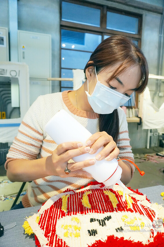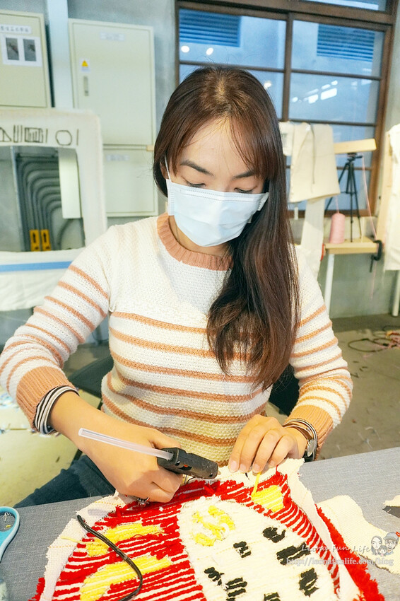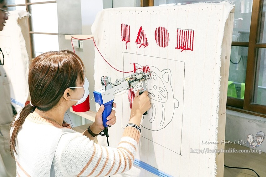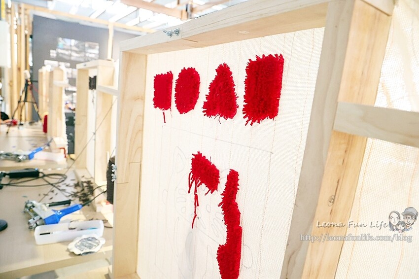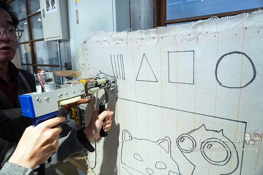 還可以透過Tufting gun簇絨槍"噠噠噠"的一針針打出可愛地毯、掛毯,
