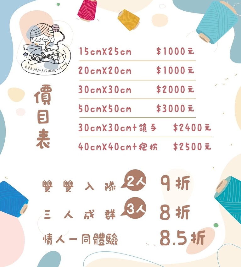 報名方式:私訊「老奶奶手作地毯FB粉絲頁」、專線:0975-878 061