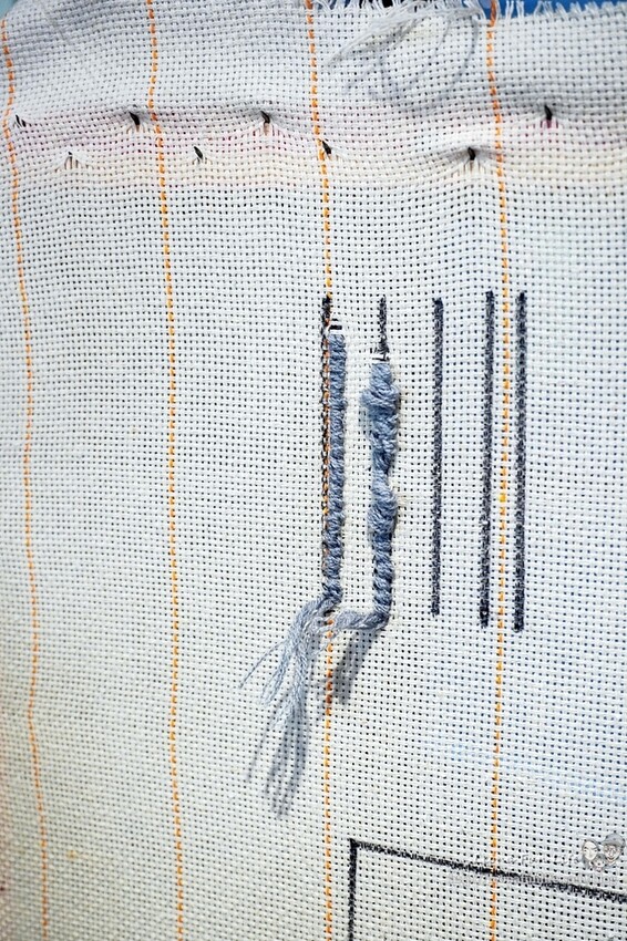把畫布內折黏合在毛線上,