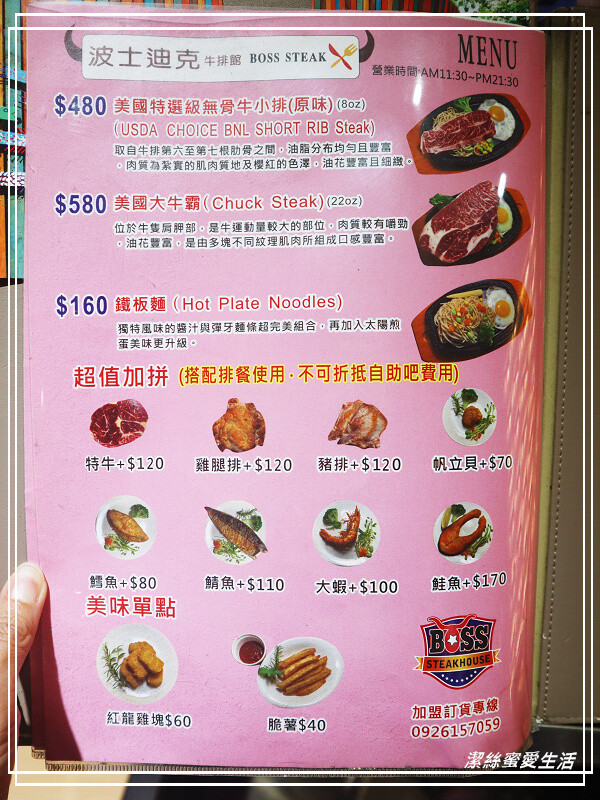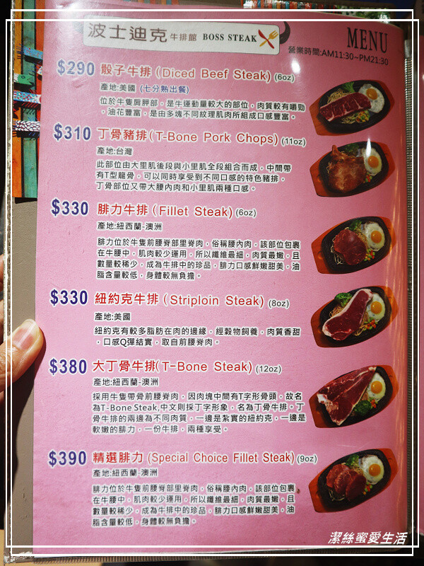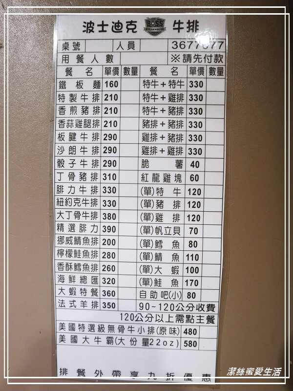 假日耍廢懶洋洋地不想開伙,晚上一家人心血來潮來到附近這間 波士迪克牛排館 來用餐,雖然目前已調整過價格,依然生意頗興隆,我們臨時起意地過來吃,沒有事先訂位,當時全面客滿還稍微等了一下XD,還好並不會太久~排餐最低210元起,還有湯品/吐司/麵線/飲料/冰淇淋等自助吧無限享用,覺得CP值還不錯。
