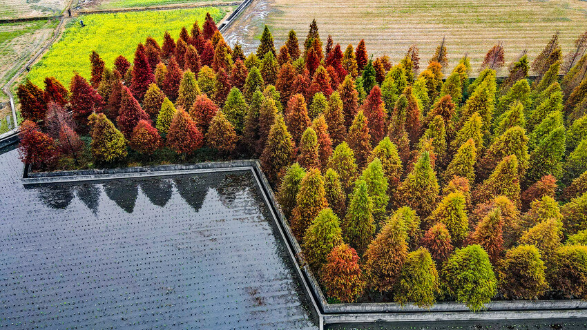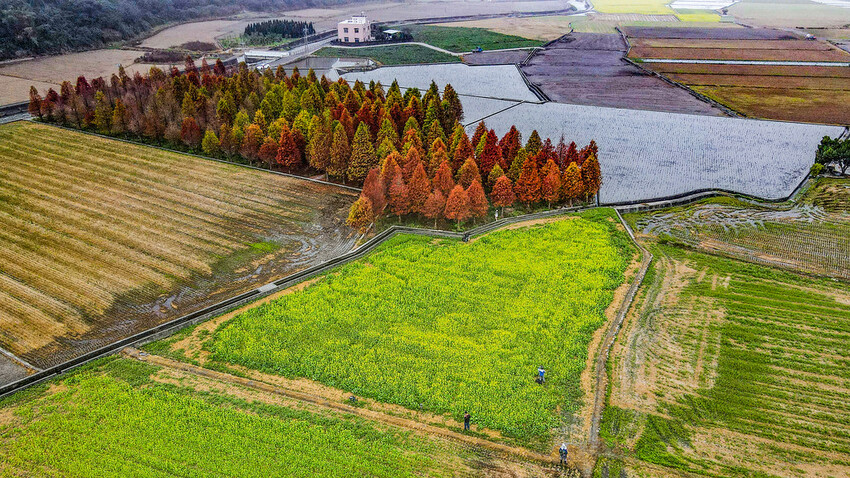 加上一月初正是落羽松正火紅時分