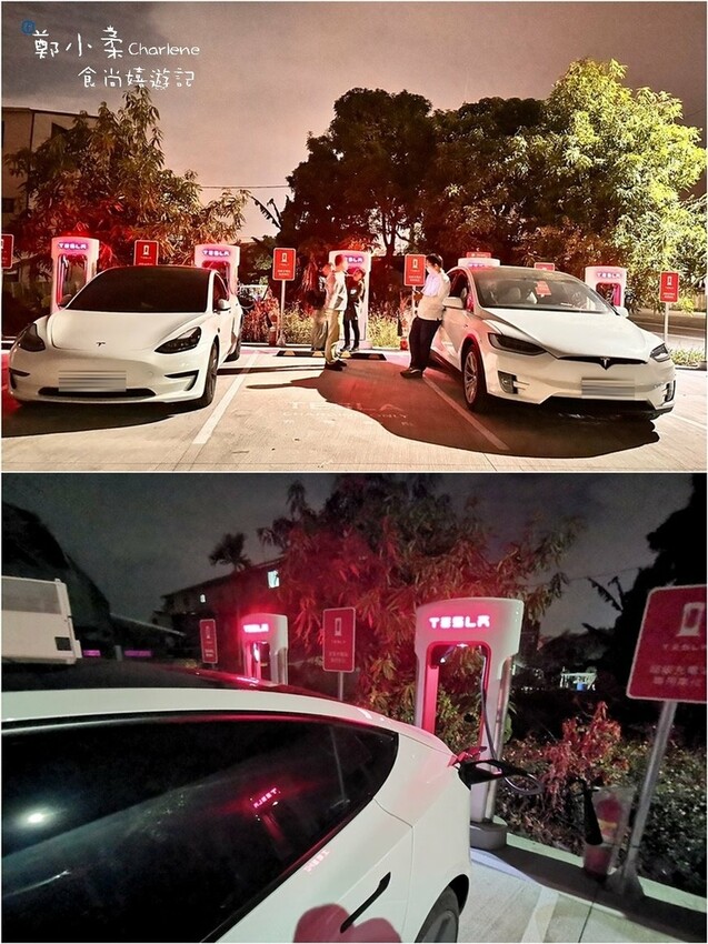 回程路上,順道至附近特斯拉Tesla充電站充個電。