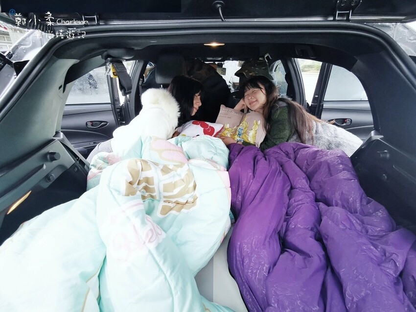 而我跟好友,因為個子不是太高,睡Toyota Yaris勉強還OK!