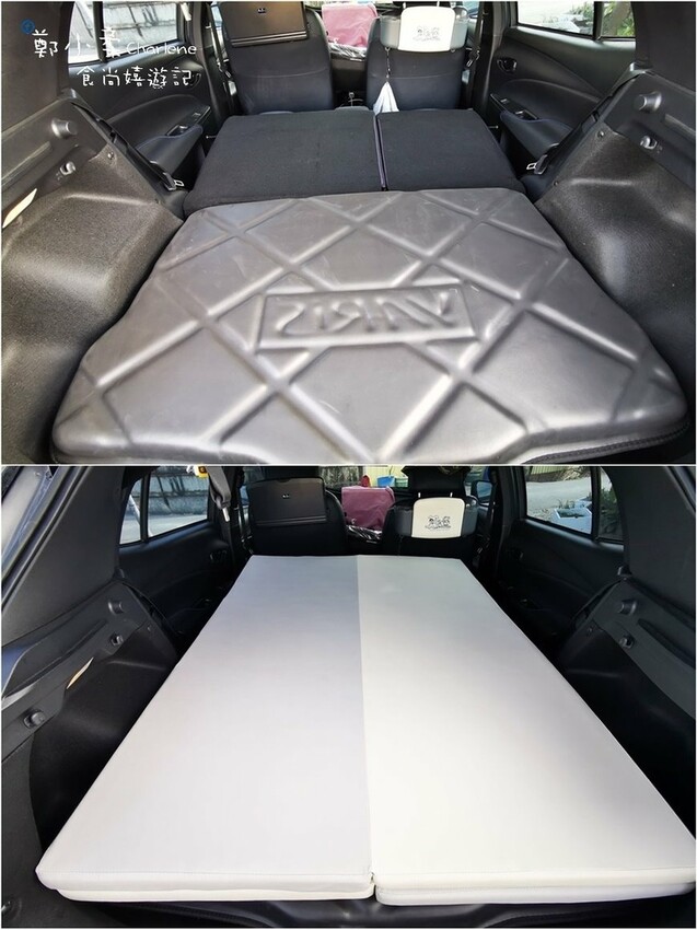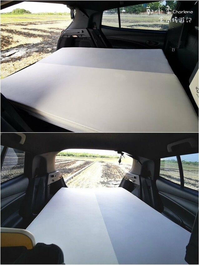 ▼擺上現有的小孩遊戲墊,充當軟墊式床墊,Yaris後座平整化瞬間完成啦!