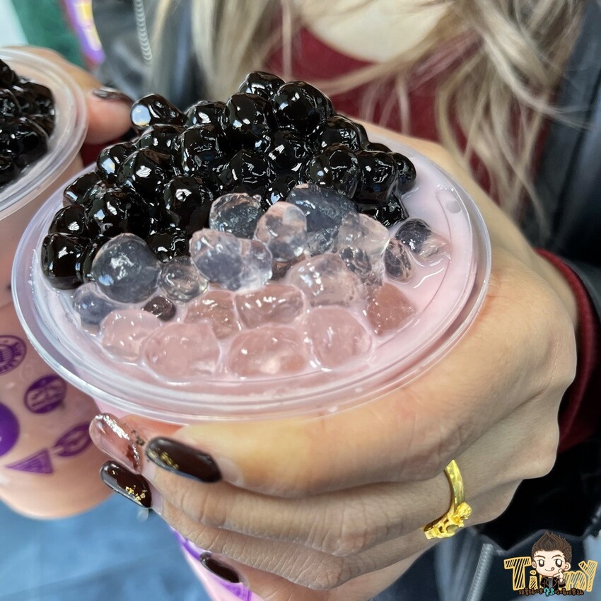 Q軟的黑珍珠和有脆度蒟蒻晶球,加上甜蜜蜜的草莓牛乳,是女孩們最愛的口味了