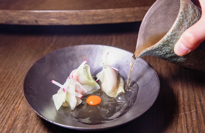 羊肉 蘿蔔 藥膳看著菜單上的食材名字,再點照有一點時尚的餐廳及擺飾,好奇到底入口會呈現怎樣的顛覆味覺,淋上高湯後又把我的視覺微微往台式羊肉湯、羊肉爐的方向帶,就連香氣也隱約呼應著。實際吃起來的味道也的確有一點像,只是更為細緻的風味得更細細的去品味,尤其是那金黃的湯汁,還有蘿蔔片中點到為主的羊肉鮮。