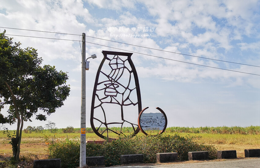 約略在高鐵大道跟64縣道交叉口的這個標誌,是魚寮遺址的地標。