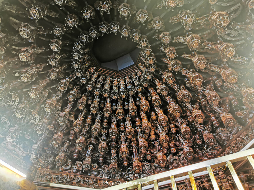 廟內的藻井看似採用繁複的工法,小巧卻又華麗。