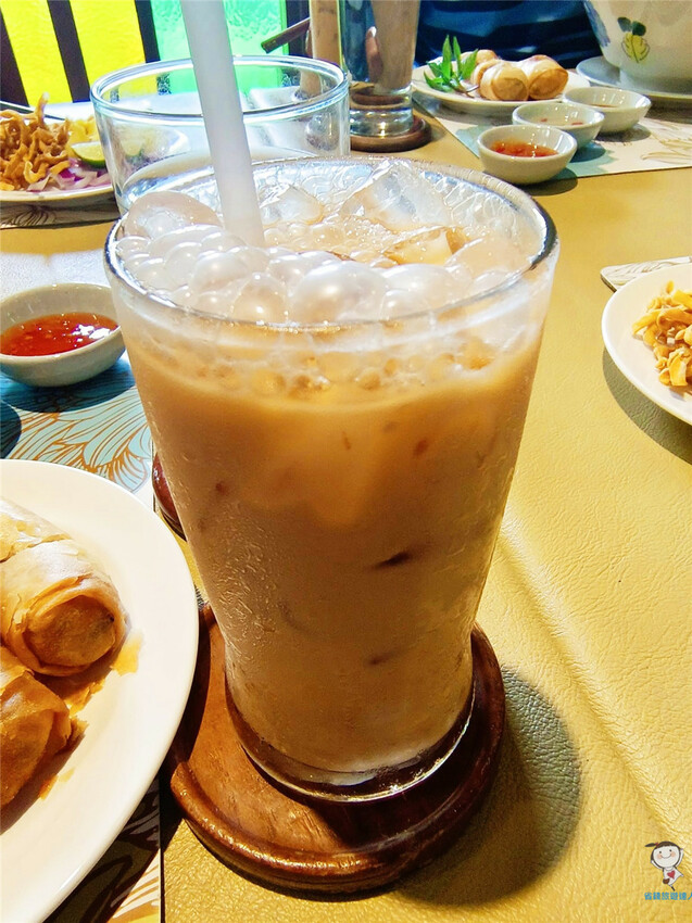 加了冰塊的泰式奶茶有人覺得太甜,我卻覺得搭配濃郁的咖哩麵一起剛剛好