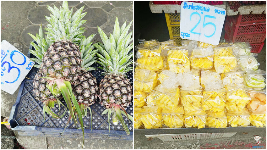 泰國的鳳梨比較小顆$30,吃起來沒有台灣那麼甜,酸酸甜甜的滋味也不錯