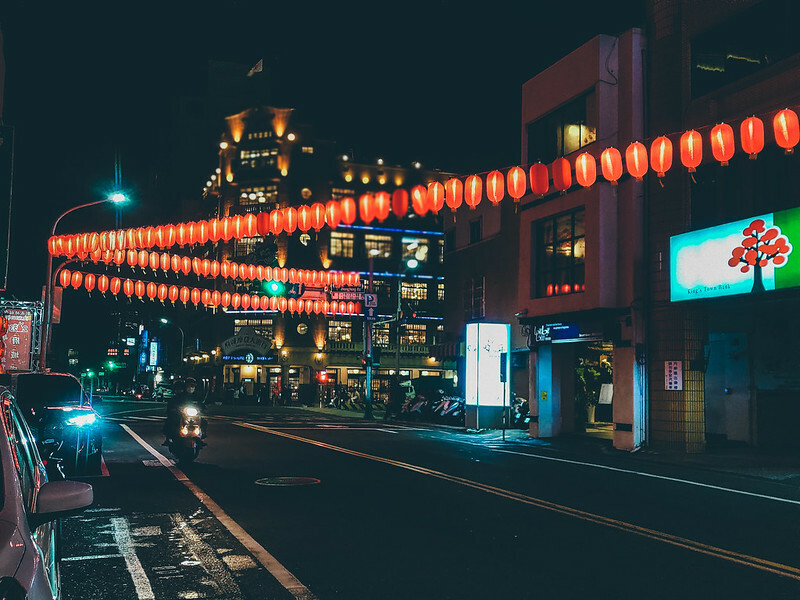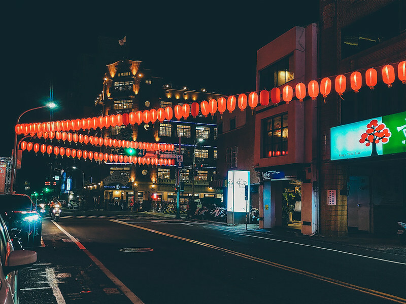 今年只有在靠近忠義路的停車格上放置而已,人行道上就沒掛上大紅燈籠~