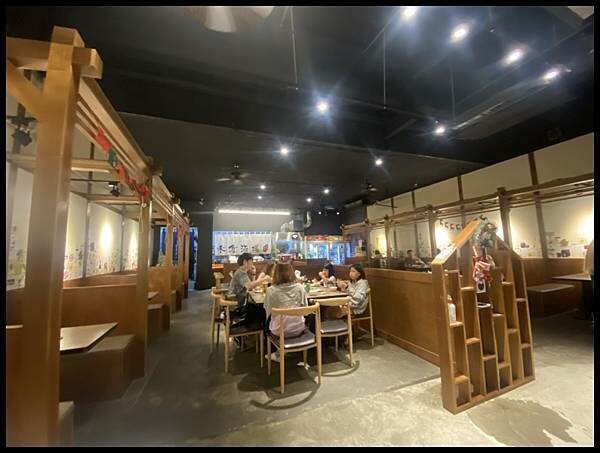 以日式居酒屋的風格裝潢,日式木椅與木桌,充滿溫度