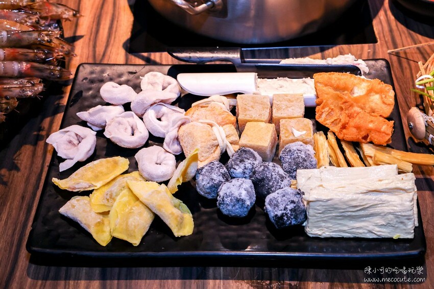 手工蝦仁滑、手工花枝滑、新鮮嫩豆包、黃金腐竹、魚子福袋、老油條和多種手工餃類也都是必點,我平常就愛吃豆皮,這裡竟然還有豆包和腐竹一次滿足,後面留著胃的空間,直接加點好幾次。