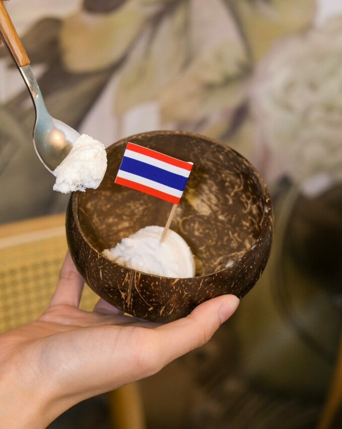 ▼Chillin Today是店家旗下的義式手工冰淇淋品牌,由老闆堅持天然無添加製作而成,介於雪酪和冰淇淋間的口感,清爽綿密不甜膩,以泰國進口椰子殼當作器皿,充滿巧思,個人推薦椰奶和泰奶口味,很有泰國在地的特色風味。