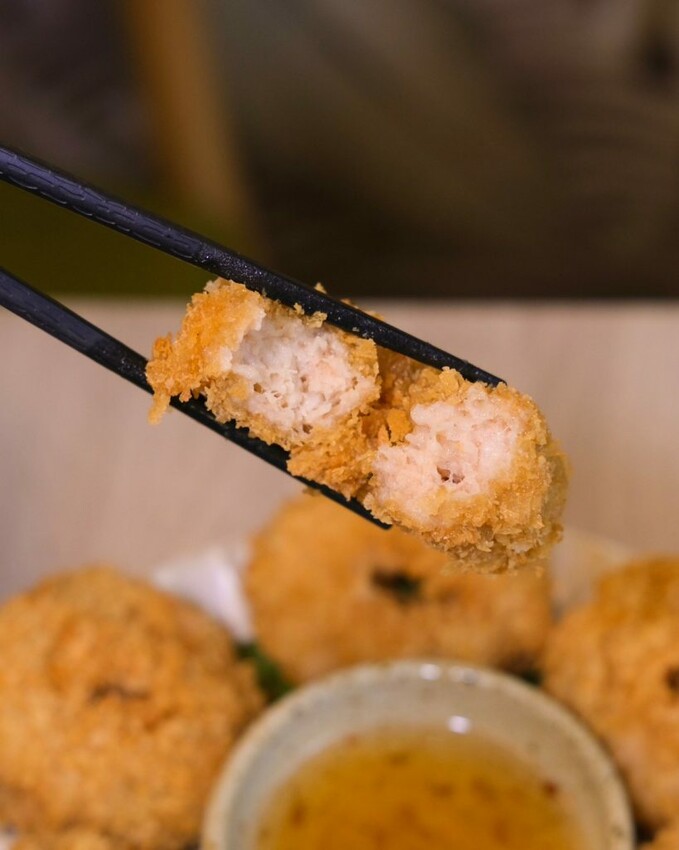▼使用100%純蝦仁製作的金錢蝦餅,每一口都吃得到真材實料的蝦肉,酥脆不油膩,沾上酸甜的醬汁更加爽口!