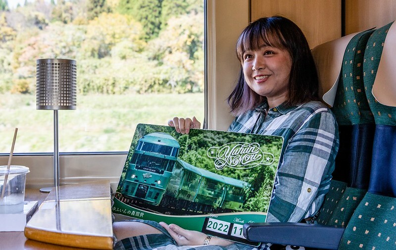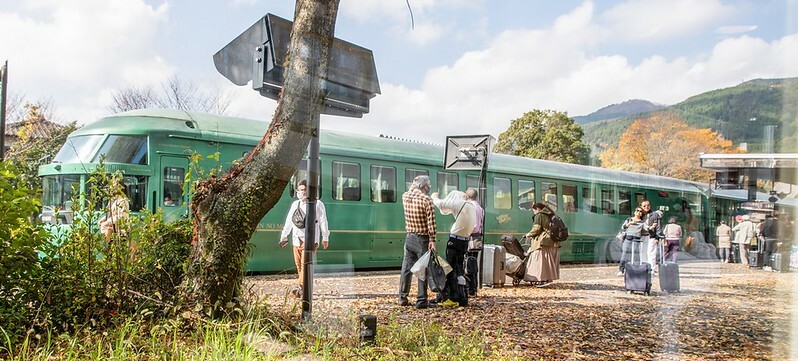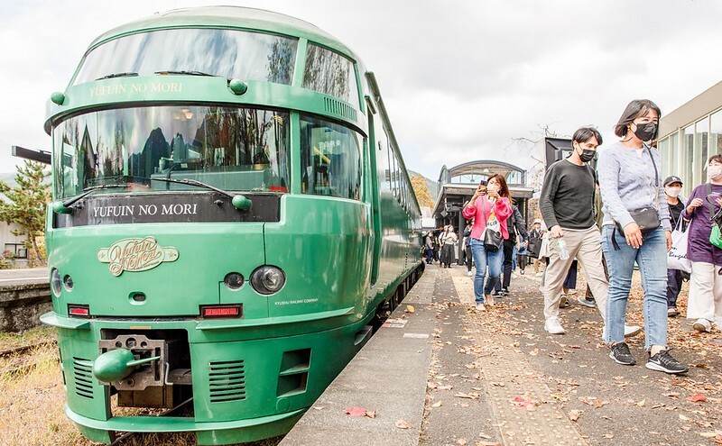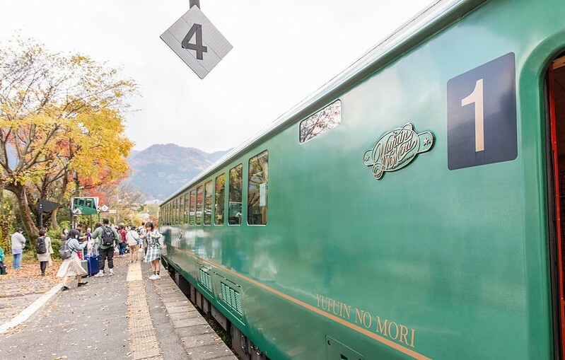 個人比較建議從福岡方向上車,在由布院下車,因為停靠的時間比較久,有較多的時間好好拍拍這輛「由布院之森」,如果你是在這上車,車站會在車要開前才放行,拍照的時間會相對急了些。