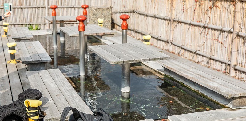 月台有足湯,車站前有手湯,日本人就是會XD