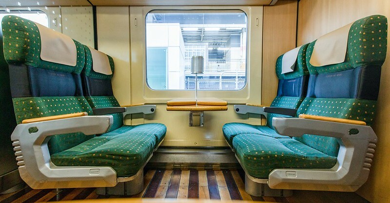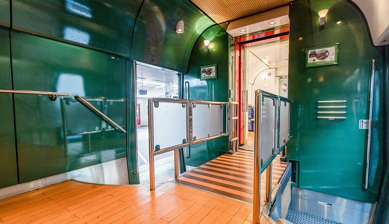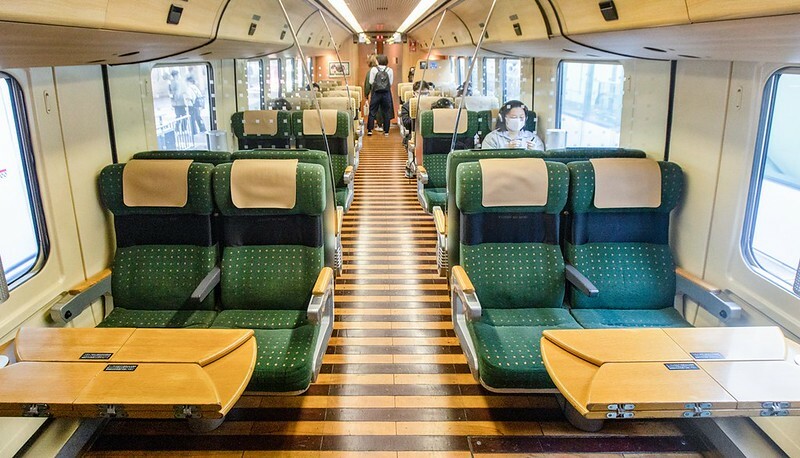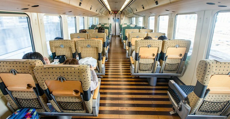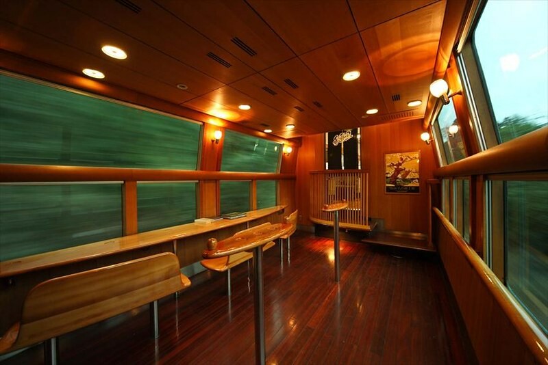基本座位的配置為2×2有米色和綠色兩種沙發,另外有附設桌子的4人包廂座席,適合家族與一群三五好友出遊時搭乘。因為車體比高,窗景也有比較高的視野。