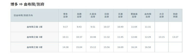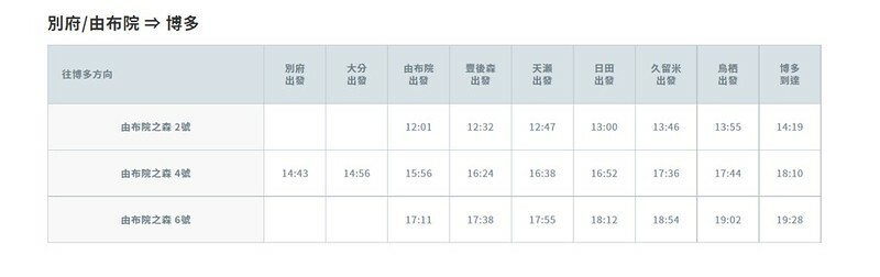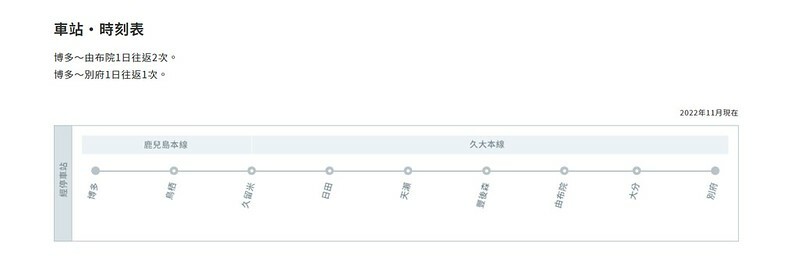 以上的列表是來自官網的最新各站停靠的時間表,但出發、預訂前建議還是去官網看一次比較準。九州JR官網