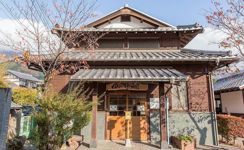 由布院的紅葉,還有可能不少人經過,但不知是溫泉的湯の坪温泉大眾溫泉(200日幣)。【日本大分-由布院溫泉紅葉】紅葉迷路散策+湯の坪温泉.由布院教會.遇見100種顏色的由布院