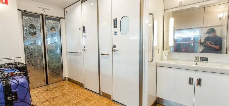 車廂的前後都有木造的行李廂櫃,談不上華麗但空間絕對足夠,潔白的洗手間空間相對一般的火車算是大且乾淨。