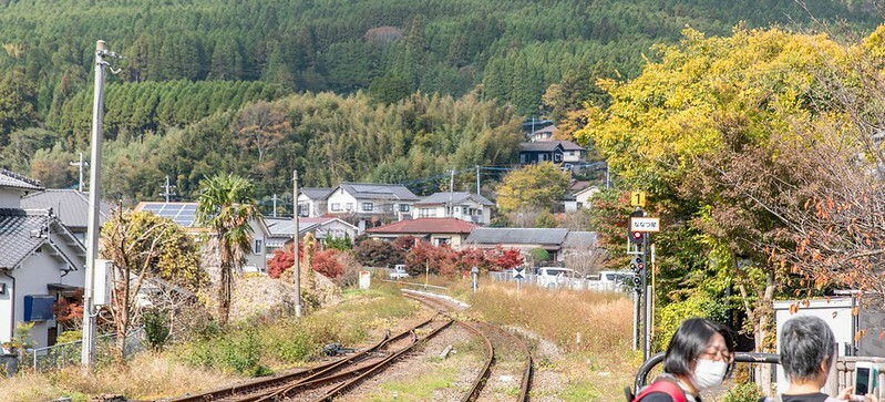 車站月台在秋天時還蠻漂亮的,前方還有一個免費的足湯可以一邊泡腳一邊欣賞列車。