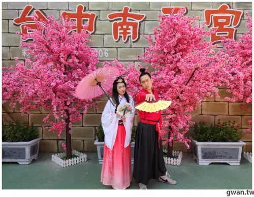 換上古裝後可以到南天宮對面這一片櫻花林、桃花林中拍照,