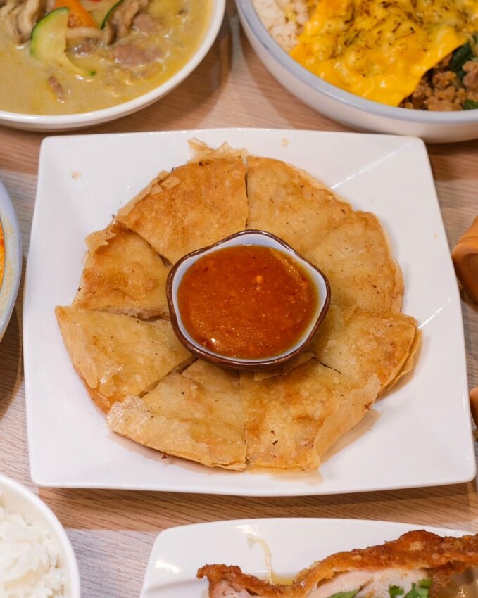 ▼月亮蝦餅以蝦漿製作炸至金黃焦脆,咬起來是薄脆路線,但還是能吃到蝦肉的鮮甜,搭配酸辣泰式醬汁好吃又涮嘴~