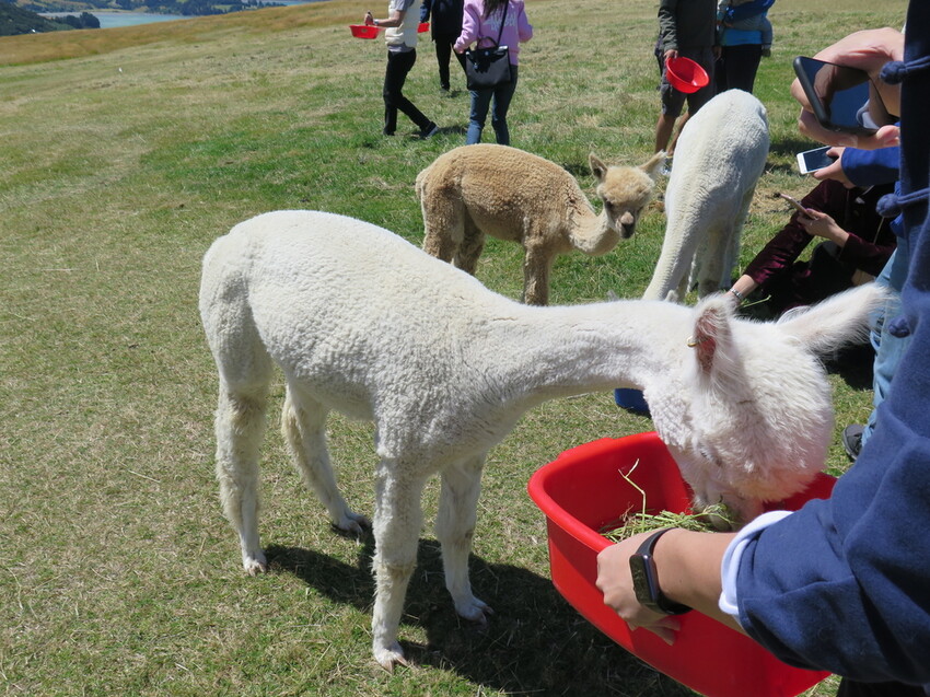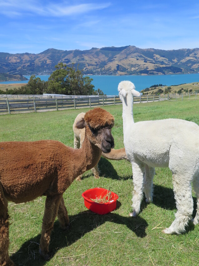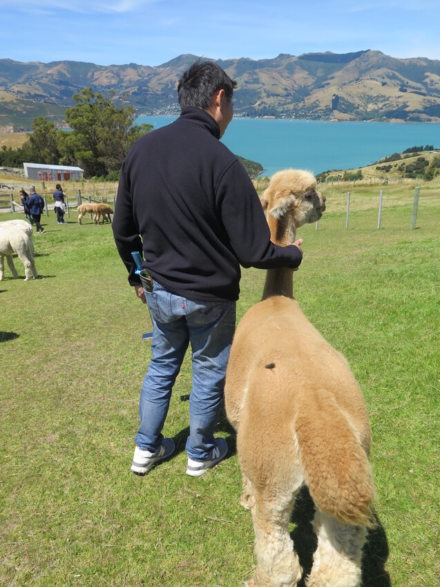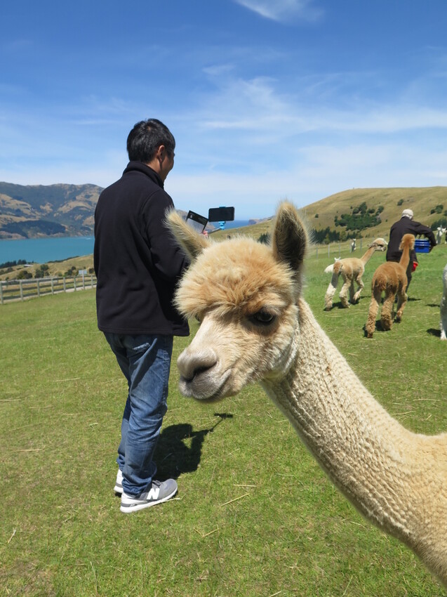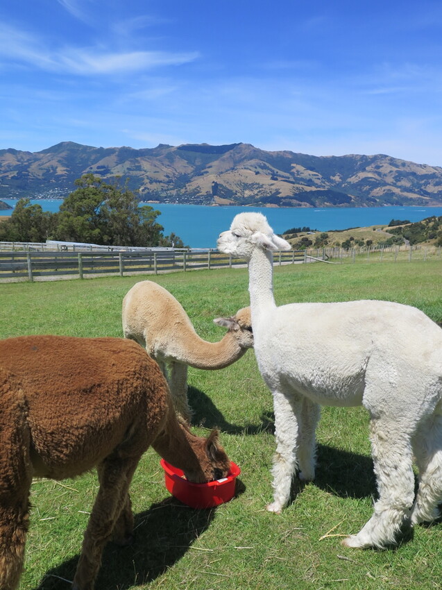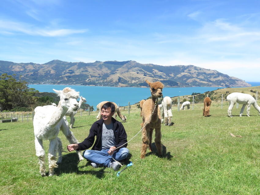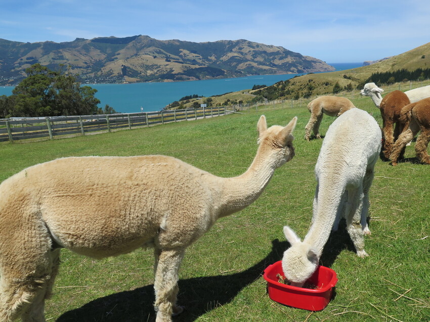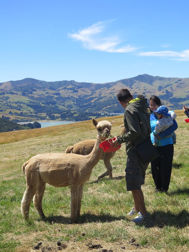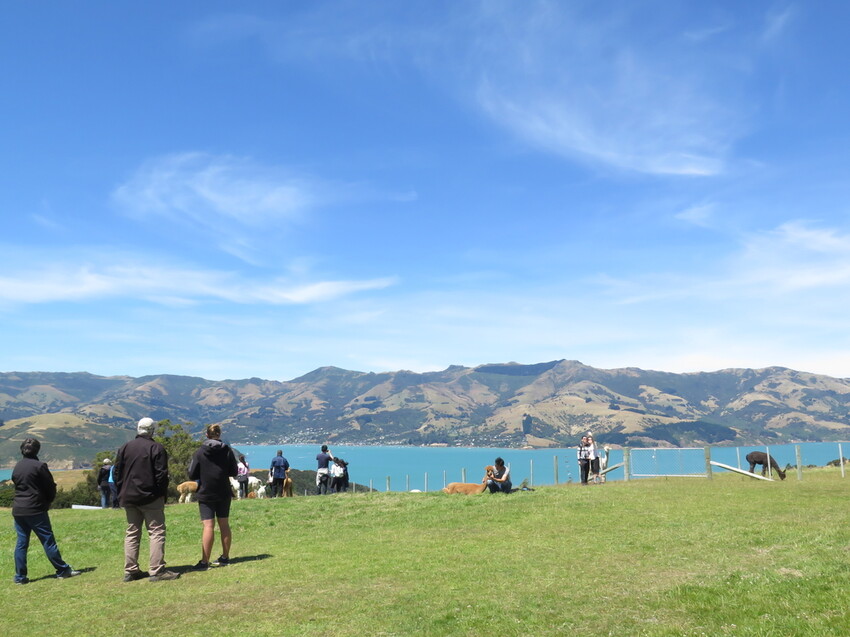 在與羊駝玩樂的同時還可以俯瞰整個 Akaroa 的美景,