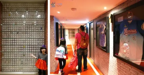 樂逸是間以棒球為主題的旅店,可想而知全館都可見棒球元素,從一進門就有面簽名棒球牆,這得要花多少時間收集啊、每層樓都有球衣和球棒的展示、餐廳有球員卡;因為我懒懒的,所以沒有走遍每一處,但光走到的地方就充滿棒球元素
