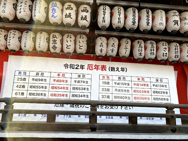 建築四週掛有好幾排祇園當地商家奉納的白燈籠,上次過來是傍晚的時候來,