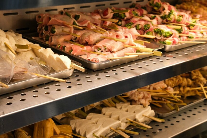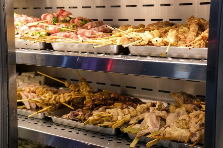 ▼【柒息地串燒居酒屋】的串燒食材處理的相當乾淨,整齊陳列在透明冷藏櫃保持新鮮度,想吃什麼就自行拿取,,其他酒類、海鮮類、私房菜類則是額外畫單。
