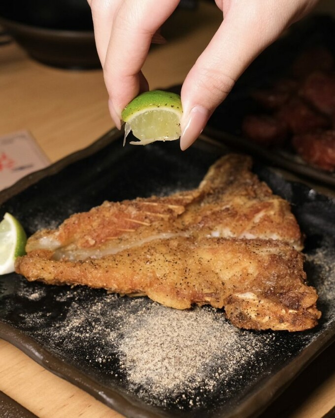 烤到金黃酥脆的鯛魚下巴,肥滋滋充滿魚油香氣,搭配胡椒鹽好夠味,每一口魚肉都很鮮美~