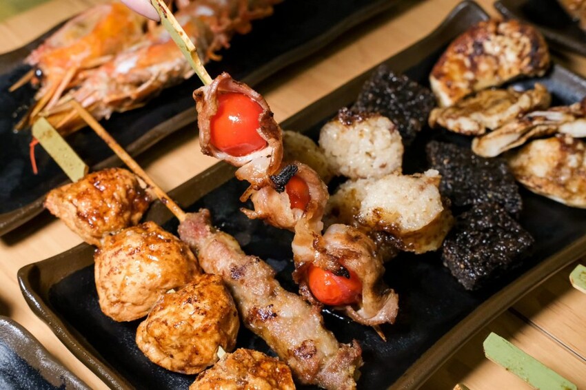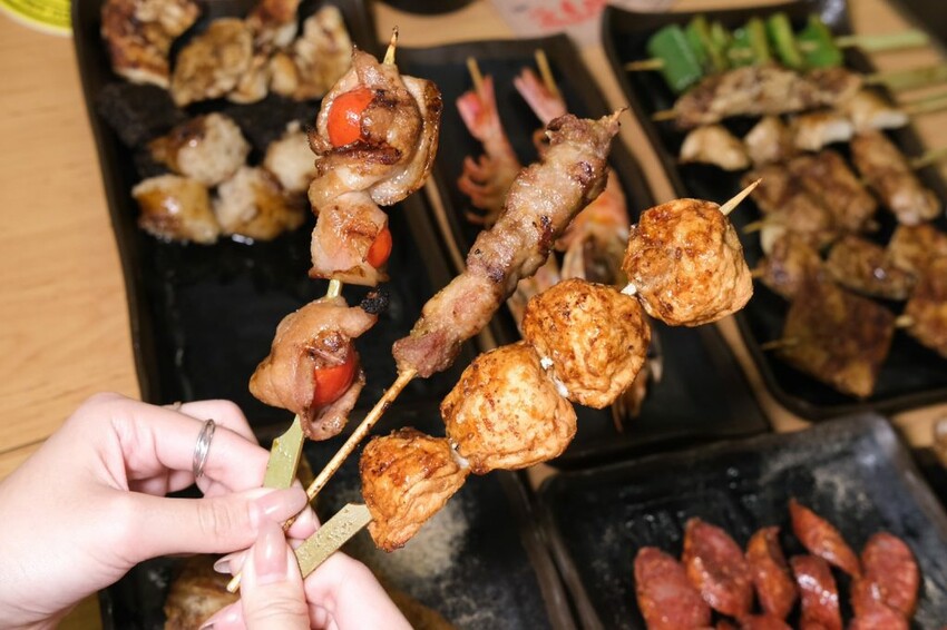▼肉肉控不可錯過的肉類串燒,推薦咬下去的時候會爆汁豬五花包番茄,酸酸甜甜開胃又好吃,另一款秘醬燒蔥肉串包著清新的蔥段,越咬越散發出迷人的蔥香,滿滿水份更多了好入口的濕潤度。