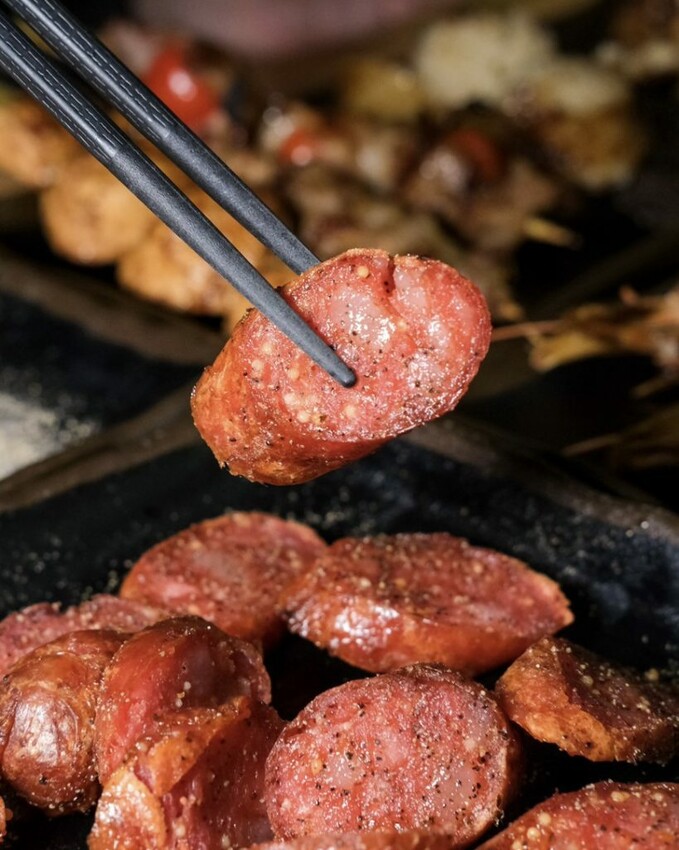 ▼以純手工製作的飛魚卵香腸,還沒入口就聞到濃濃香氣,外皮焦香脆口,裏頭是飛魚卵啵啵的咬感,讓人忍不住一口接一口。