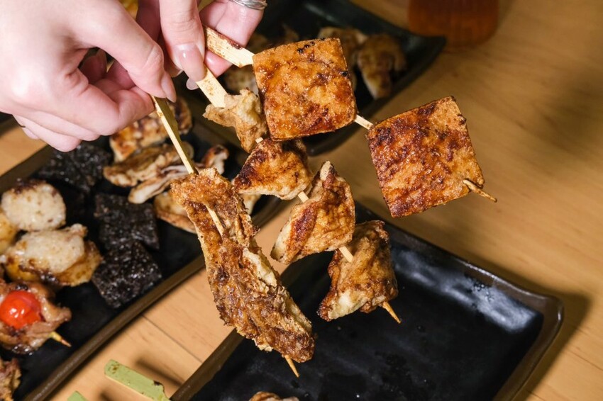 ▼現烤串物以秘製醬料加持後香氣逼人,甜不辣咬感Q軟又有彈性,豆皮則酥脆又卡滋卡滋,豆干保有嫩口的口感,能感受到純粹的豆香,花枝丸能咀嚼到花枝肉塊,每一款都各有特色。
