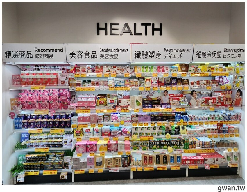 店內空間雖不算大,但商品非常齊全,無論從美妝保養、生活用品、醫藥保健、零食、寵物專區…一應俱全,並引進日本直輸新品,讓台灣顧客也能購物零時差