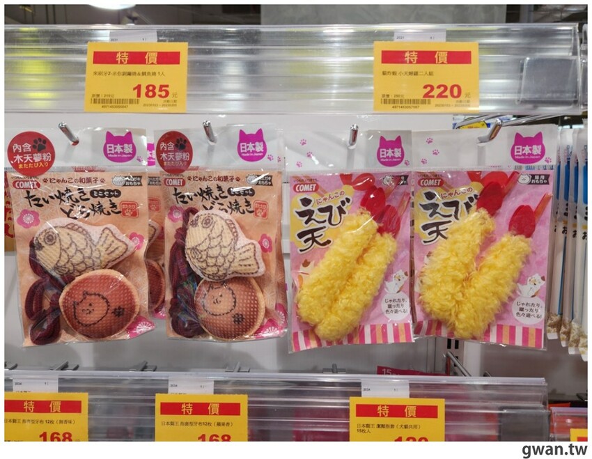 很可愛的炸蝦跟鯛魚燒,好像是讓貓咪邊咬邊潔牙的,因為我沒養過貓,很多東西看起來都好新奇喔!