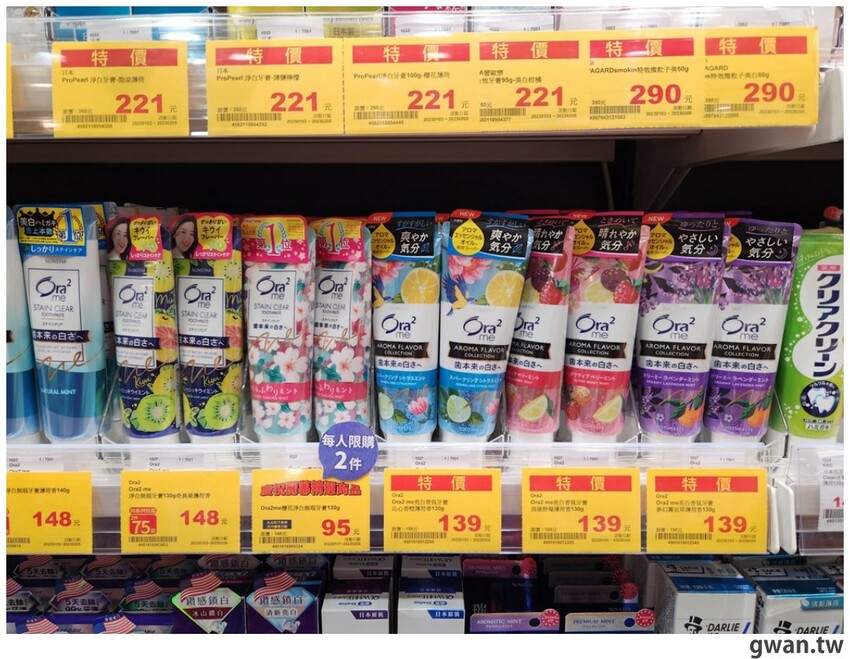 牙齒護理系列,像是牙膏、漱口水、牙刷選擇都很多,照片裡的櫻花牙膏特價蠻優惠的,加上人氣第一名就買起來,這款刷起來有櫻花香味