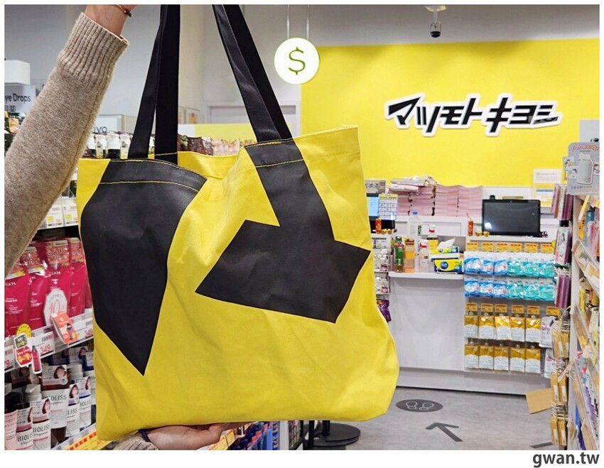這就是前面提到滿額贈送的松本清LOGO提袋,我們第一天來逛就直接滿額,連塑膠袋都不用加購了(笑~),這個帆布袋看起來有點像之前流行的美腿包,但你把它轉個方向會發現是店名開頭的片假名,還蠻有趣的