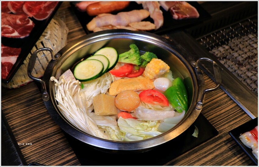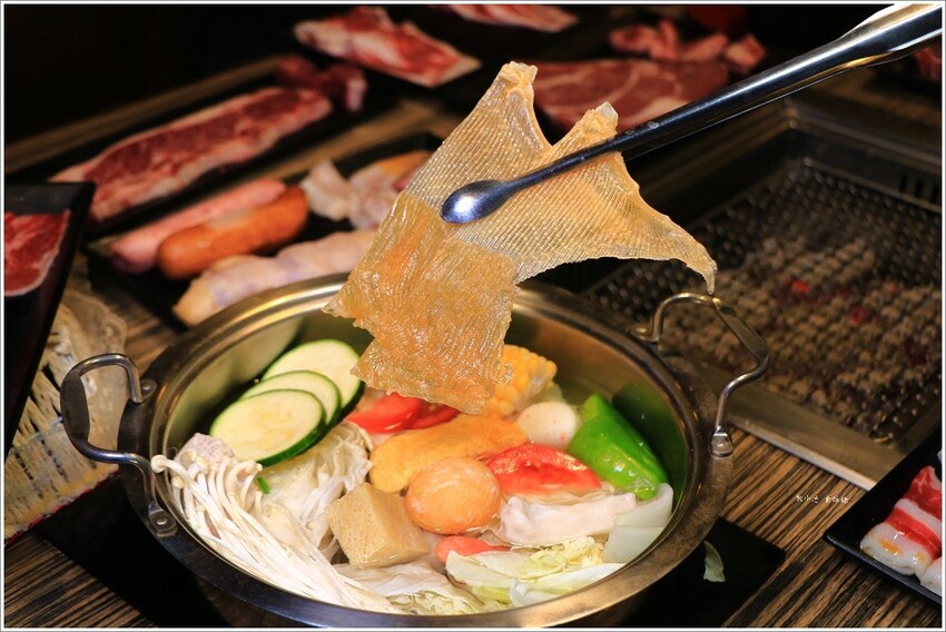 第一次看到挺特別,服務人員有介紹可以先放入鍋中煮個1-2分鐘,之後再放到烤架上