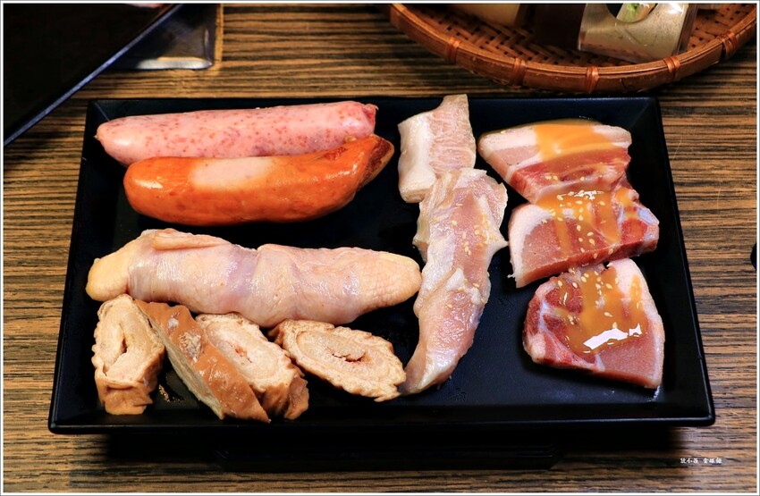 滷大腸、雞肉捲、德式帶骨香腸、手工飛魚卵香腸、雪花松板豬、味噌豬小排