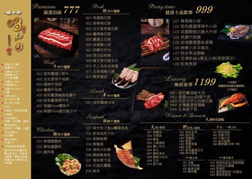 吃到飽有$777、$999、$1199、以及$1199+$499龍蝦吃到爽四種選擇